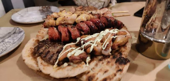 Πολύ νόστιμος γύρος στα κάρβουνα! Πολύ ωραίο λουκάνικο και πανσετα! Το συνιστώ