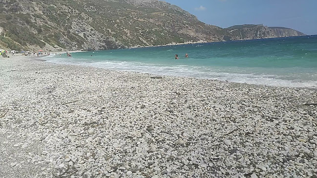 Μεγάλη παραλία, διάφανα νερά, λευκά βότσαλα, βαθιά νερά, ιδανική οταν δεν εχει βοριά.